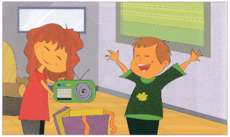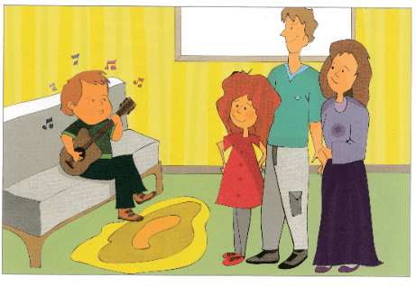 For one week, Nick listened to the radio every day. He didn't play any music. His parents were sad. They liked the radio, but they liked Nick's music, too. One evening, Nick thought of a song that he wanted to hear, but the song wasn't on the radio. He went to the basement and got his old guitar. He started to play. His parents were happy to listen to his music again.