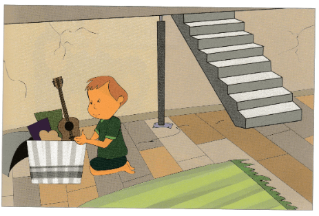Nick had a dream that he was famous. In his dream, he played his old guitar. When he woke up, he listened to the radio. He liked the songs and he sang, too. After school, his mother asked him, "Nick, don't you want to play the piano now?" But Nick said, "No, I'm listening to the radio now." He took his guitar off the table in his room and put it in the basement.