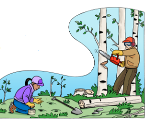 I See Tall Trees The woods have tall trees. I like to walk in the woods. I like to see and smell trees. I see workers in the woods. I see workers saw down tall trees. I see tall trees fall. I hear tall trees fall. I see workers plant seeds. I see seeds grow into trees. I like to see tall trees in the woods.