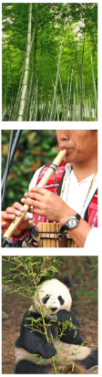 We Love Bamboo Bamboo is a great plant. It grows faster than most other plants. Trees take many years to grow tall. Some bamboo can grow tall in three or four months. One bamboo plant can have many stems. A few bamboo plants can grow into a whole forest. We use bamboo to make many different things. Bamboo can be used to make paper or a floor for a house. We can even use bamboo to make music. Giant pandas and other animals eat young bamboo. We can eat young bamboo, too! |
