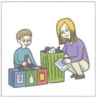 "OK, I will try to be more careful from now on," said Jeremy, and they started sorting the recyclable trash together.