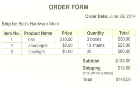 Read the order form. Then answer the questions.