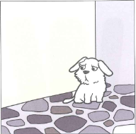 "What's that?" Miriam pointed to the corner of the street. There was a puppy. It looked very small and weak. Joanna and Miriam walked closer. The puppy seemed like it was scared of them, but it looked so tired. It didn't even bark at them. It just kept making a whimpering sound.