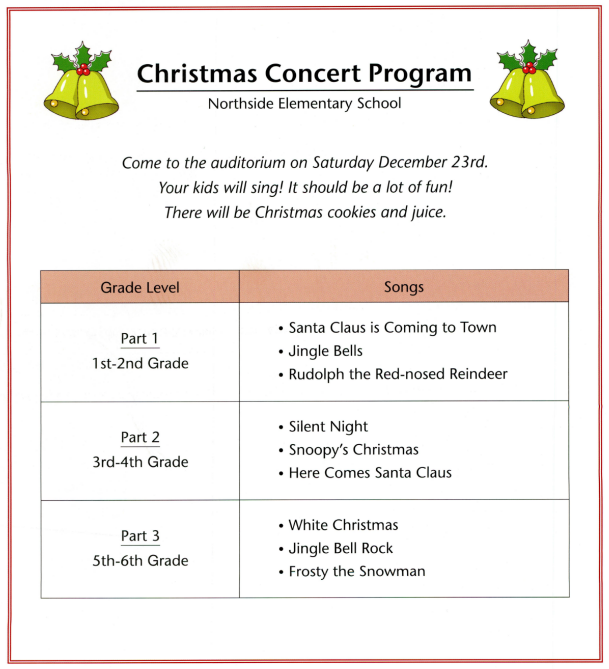 Read the program. Then answer the questions.