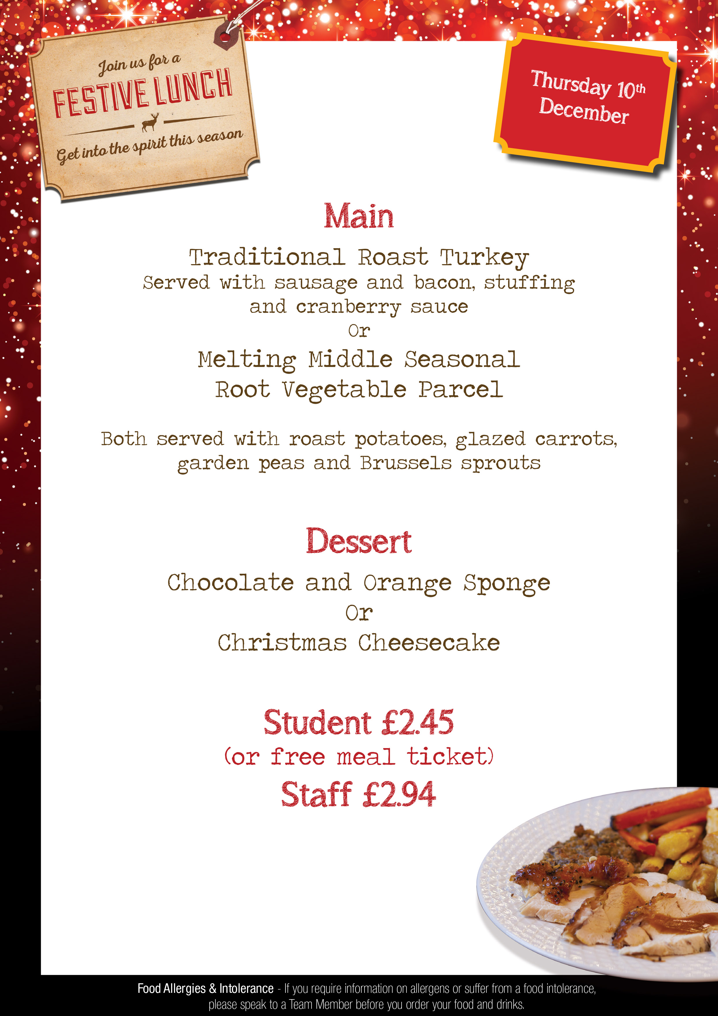 Which dessert is NOT included in this meal?