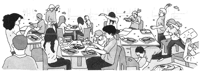 What does the author mean by saying the whole cafeteria was in chaos in paragraph 4?