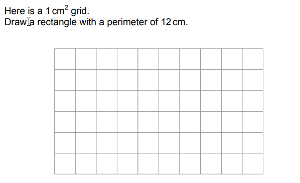 Here is a 1 cm2 grid. Draw a rectangle with a perimeter of 12 cm.