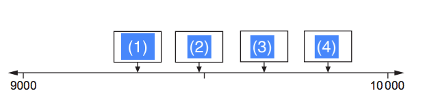 Write each number in its correct box to show its position on the number line. You will not need all of the boxes: 9482; 9842.
