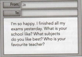 1. Read the email from your friend, Jo. Write an email to Jo to answer the questions. Write 25 - 35 words.