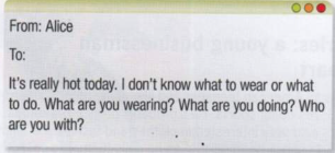 1. Read the email from your friend, Alice. Write an email to Alice to answer the questions. Write 25 - 35 words.
