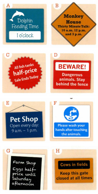 Which notice (A-H) says this (1-5)?