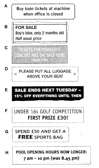 Which notice (A-H) says this (1-5)?