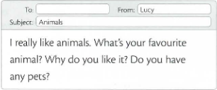 1. Read the email from your friend Lucy. Write an email to Lucy to answer the questions. Write 25 - 35 words.