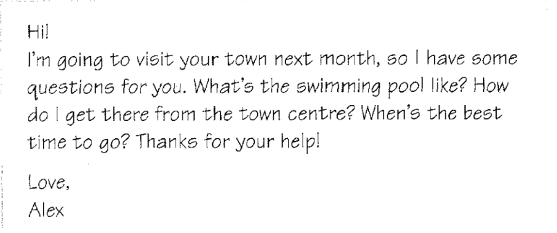 1. Read the email from your friend Diana. Write an email to Diana to answer the questions. Write 25 - 35 words.