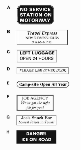 Which notice (A-H) says this (1-5)?