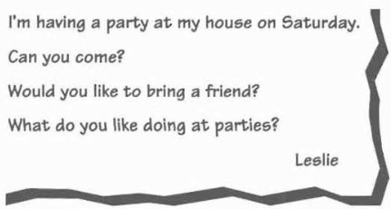 1. Read the note from your friend Leslie. Write a note to Leslie and answer his questions. Write 25 - 35 words.