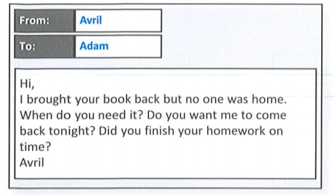 1. Read the email from your English friend Avril. Write an email to Avril and answer the questions. Write 25 words or more.