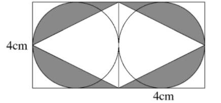 Một hình chữ nhật được ghép bởi 2 hình vuông cạnh 4cm. Tính diện tích phần tô đậm.