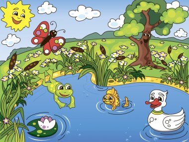 Look at a pond. Plants and animals live there together.