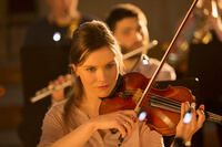 The violin became part of an family. Its cousins were the viola and the cello. The violin was the soprano. This is because it had the highest sound. It could play different types of music. A plucked violin made a happy sound. Played softly, it sounded sad. A loud violin could sound angry. Today, the violin still sounds the same. It makes beautiful music.