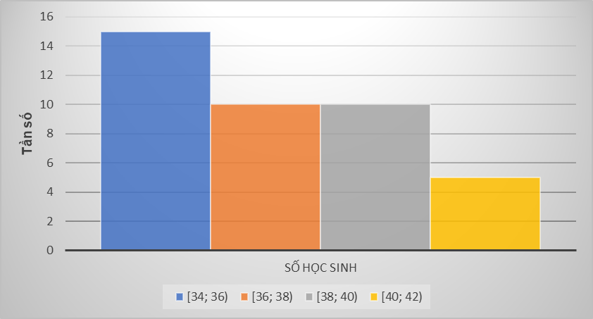 Sau khi điều tra số học sinh trong 40 lớp học (đơn vị: học sinh), người ta có biểu đồ tần số ghép nhóm dưới đây: