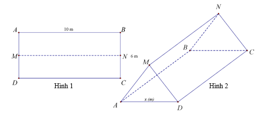 Trong buổi thăm quan dã ngoại, mỗi lớp khối 9 được phát một tấm bạt hình chữ nhật ABCD cùng loại có chiều dài 10 m và chiều rộng 6 m; với M, N lần lượt là trung điểm của AD, BC (hình 1).