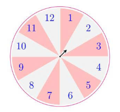 Hình vẽ dưới đây mô tả một đĩa tròn bằng bìa cứng được chia làm 12 phần bằng nhau và ghi các số 1, 2, 3, ..., 11, 12; chiếc kim được gắn cố định vào trục quay ở tâm của đĩa.