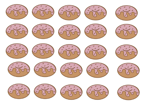 Một khay chứa 25 cái bánh. An ăn số bánh trong khay. Hỏi trong khay còn lại bao nhiêu cái bánh?
