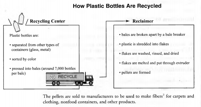 The diagram below explains the process of recycling plastic bottles for new uses.