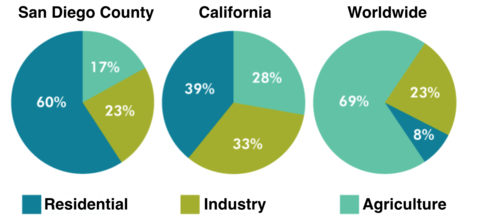 The pie charts below compare water usage in San Diego, California and the rest of the world.