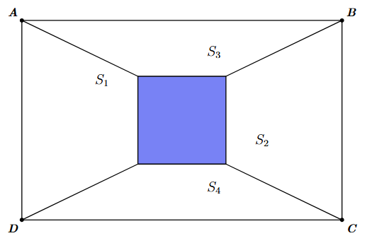 . Hình chữ nhật được chia thành một hình vuông và bốn hình thang. Biết rằng 4 hình thang có diện tích là