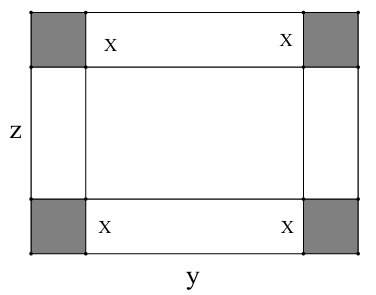 Bạn Thành dùng một miếng bìa hình chữ nhật để làm một chiếc hộp (không nắp). Bằng cách cắt bốn hình vuông cạnh x cm ở bốn góc rồi gấp lại. Biết rằng miếng bìa có chiều dài là y cm, chiều rộng là z cm. Xác định bậc của đa thức (ba biến x, y, z) biểu thị thể tích của chiếc hộp.