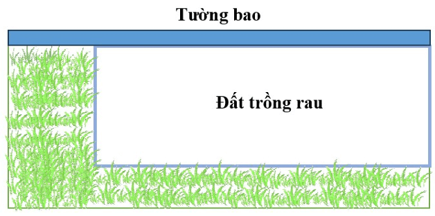 Gia đình bác Nam có một khu đất hình chữ nhật, một cạnh đã được xây tường bao (tham khảo hình vẽ dưới đây). Trên khu đất này bác Nam định cải tạo một phần để trồng rau có dạng hình chữ nhật. Tận dụng tường bao đã có và 40 m lưới B40, bác muốn vây kín ba mặt còn lại của phần đất trồng rau. Hỏi bác có thể vây kín được phần đất trồng rau có diện tích lớn nhất là bao nhiêu mét vuông?
