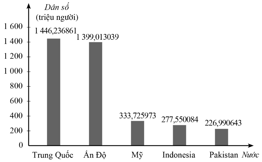 Biểu đồ cột ở bên dưới cho biết một số nước có dân số đứng đầu thế giới (tính đến tháng 12 năm 2020):
