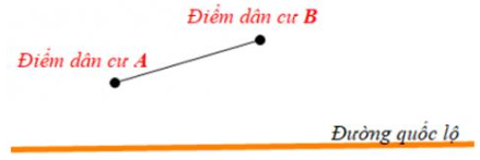 C là giao điểm giữa con đường quốc lộ và đường trung trực của đoạn thẳng AB nối hai khu dân cư.