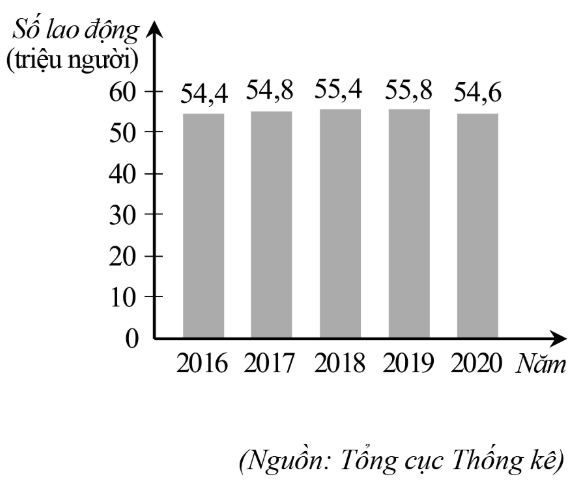 Biểu đồ ở bên dưới biểu diễn lực lượng lao động từ 15 tuổi trở lên của Việt Nam giai đoạn từ năm 2016 đến năm 2020.