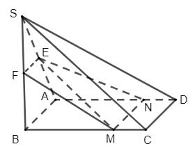 Cho hình chóp S.ABCD có đáy ABCD là hình chữ nhật, SA = SB = a, . Gọi E, F lần lượt là trung điểm của SA và SB. M là điểm tùy ý trên cạnh BC (không trùng với B, C).