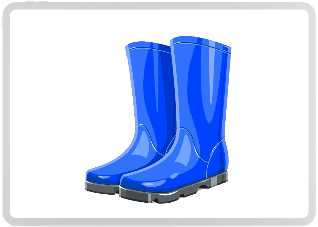 Lucy is wearing blue boots.