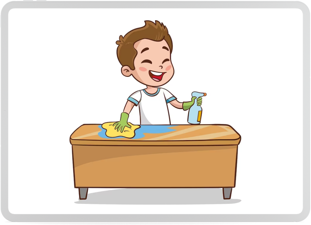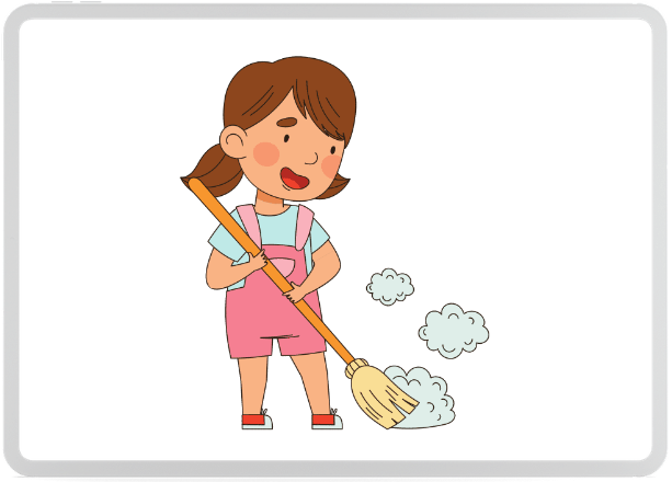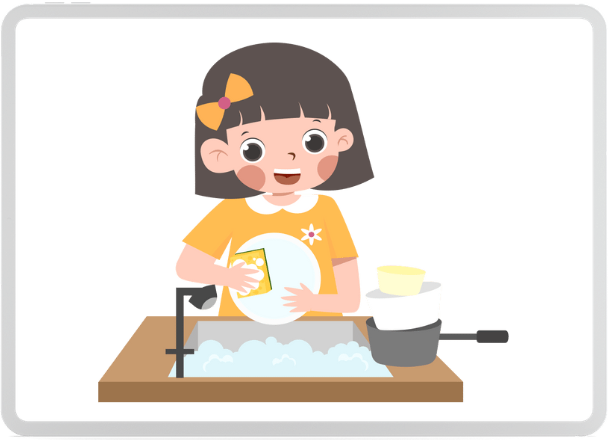 My name's Alex. I'm from Italy. My family helps each other in our house. My father waters the plants and sets the table. My mother clears the table and washes the dishes. My brother takes out the trash. He walks the dog, too. I sweep and mop the floor. I also put away groceries for my mother. I love helping my family.