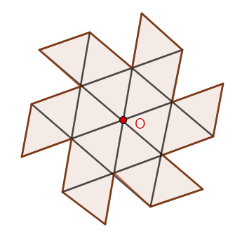 Vẽ trên giấy 18 hình tam giác đều bằng nhau và có vị trí như hình dưới (còn gọi là hình chong chóng). Biết hình chong chóng có 6 điểm mút sao cho 6 điểm này là các đỉnh của một hình lục giác đều tâm O.