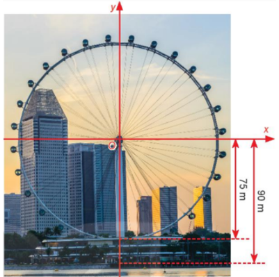 Một chiếc đu quay có bán kính 75 m , tâm của vòng quay ở độ cao 90 m, thời gian thực hiện mỗi vòng quay của đu quay là 30 phút. Nếu một người vào cabin tại vị trí thấp nhất của vòng quay, thì sau 20 phút quay, người đó ở độ cao bao nhiêu mét?