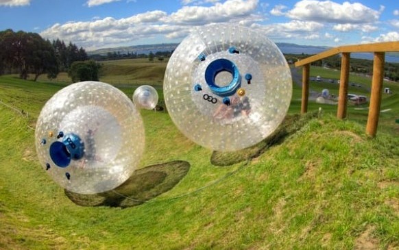 1. - This is an outdoor area with swimming pools and equipment for wet activities.