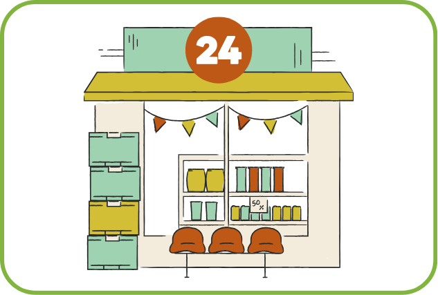 5. The nearest bookstore is the bakery.