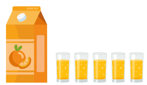 Chia đều 1 500 ml nước cam vào 5 cốc. Hỏi với 600 ml nước cam thì rót được mấy cốc như vậy?