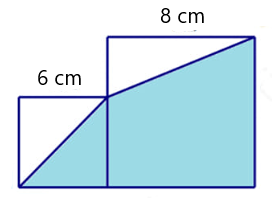Cho hình vuông cạnh 6 cm đặt liền kề hình vuông cạnh 8 cm như hình vẽ. Hỏi diện tích phần tô màu xanh trong hình vẽ là bao nhiêu?