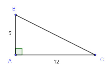 Cho △ ABC vuông tại A có AB = 5 cm, AC = 12 cm.