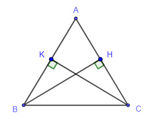 Cho tam giác nhọn ABC cân tại A. Từ B và C kẻ lần lượt hai đường cao BH và CK của tam giác ABC.