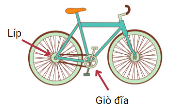 Ba bộ phận truyền chuyển động của một chiếc xe đạp gồm một giò đĩa (bánh răng gắn với bàn đạp), một chiếc líp (cũng có dạng bánh răng) gắn với bánh xe và bộ xích. Biết rằng giò đĩa có bán kính 17 cm, líp có bán kính 5 cm và bánh xe có đường kính 73 cm.