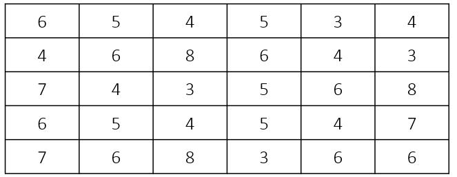Điền vào ô trống để hoàn thành bảng tần số của mẫu số liệu thống kê trên.
