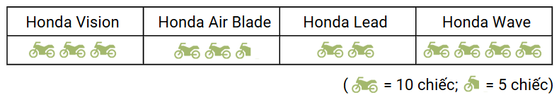 Cho biểu đồ tranh biểu diễn số lượng các loại xe máy bán ra tại một cửa hàng xe trong 1 tháng.